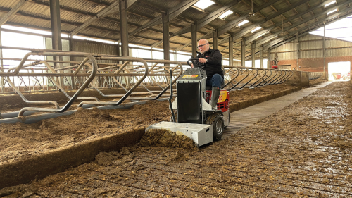 Der Selbstfahrer Cleanmeleon 2 PRO ohne Hydraulik ist für einfache Arbeiten unter hoher Beanspruchung einsatzbereit. Mit seinem kraftvollen Honda-Motor und dem werkzeuglosen Wechsel von Spaltenschieber, Schiebeschild und Futterschild ist er eine echte Arbeitserleichterung im Stall.