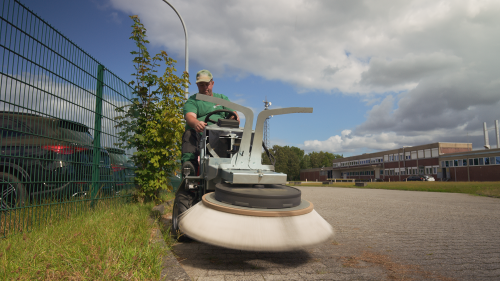 Die stabile Beborstung bewegt auch große Mengen Kehrgut. Dank des speziellen Borstenwinkels gelangt der Anbaukehrer in jede Ecke. Die Drehrichtung der Bürsten ist durch einen Rechts-Linkslauf flexibel steuerbar. Die erhältliche Drahtbürste eignet sich hervorragend zum Moosfegen.