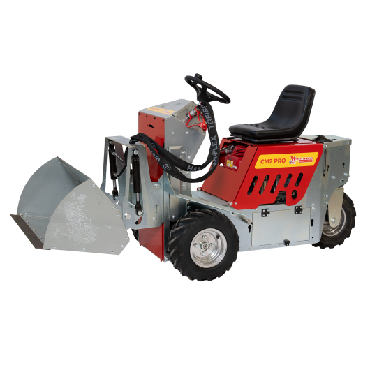 We produce this attachment for the CM2 PRO ride-on model from painted steel. It can be used to quickly and practically collect and remove large quantities of leaves and wood.