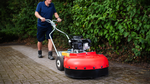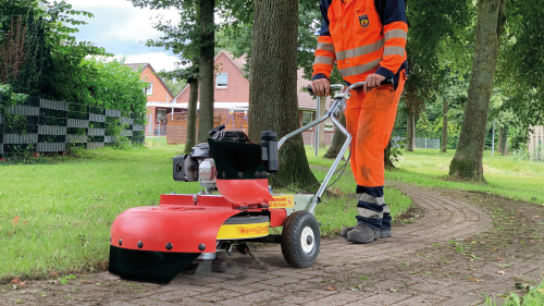 Tough on weeds, gentle on surfaces: The built-in planetary gear drives three rotating brush heads, each with four interchangeable metal braids. This allows the WKB to work with even ground pressure, preventing scratching of the surface. At the same time, it tackles weeds from all sides and removes the root portion as well. The WKB 660 Honda weed brush has already been awarded the Silver Medal at "demopark 2019" and the Gold Medal at the British "Lamma Show."