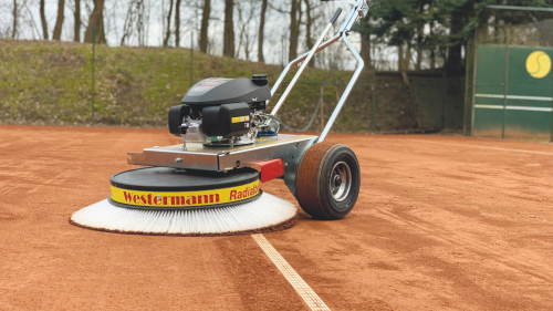 Ideal for cleaning sensitive surfaces such as sports facilities, tennis courts, or sweeping off planting film. The WR 870 Honda Special radial sweeper also makes quick work of cleaning narrow, winding passages, as the brush's direction of rotation can be flexibly controlled via clockwise and counter-clockwise rotation. The wide balloon tires provide an enlarged contact area. The more even weight distribution protects delicate surfaces.